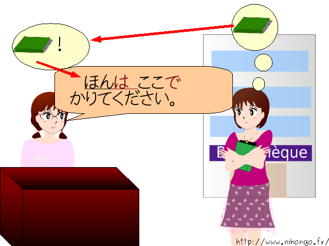 本は ここで 借りてください。