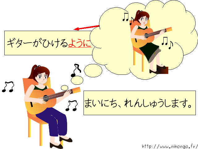 ギターが 弾けるように 毎日 練習します。
