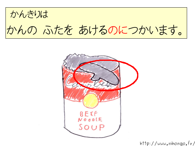 缶切りは 缶の ふたを 開けるのに 使います。