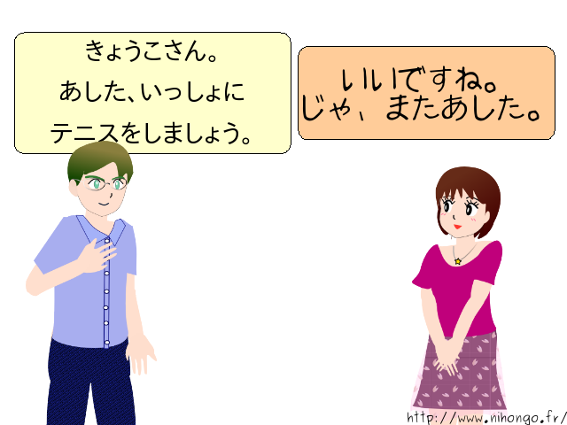 京子さんは ロランさんと テニスの 約束があります。