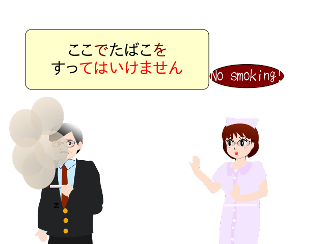 ここで たばこを 吸っては いけません。