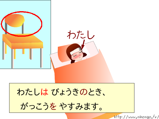 わたしは 病気の とき 学校を 休みます。
