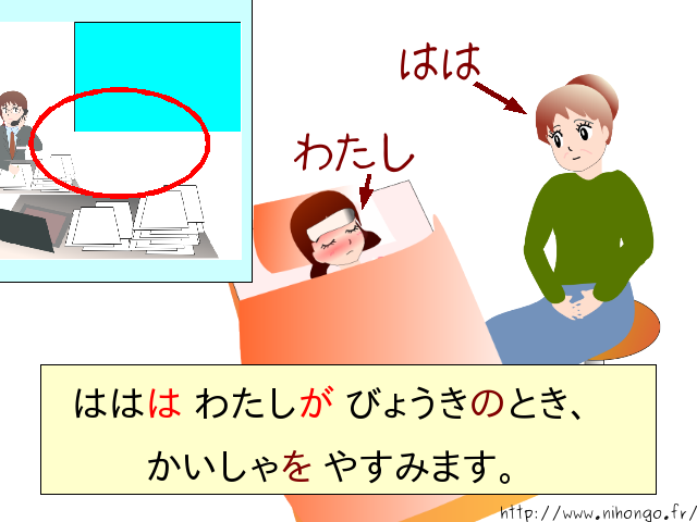 母は わたしが 病気の とき 会社を 休みます。