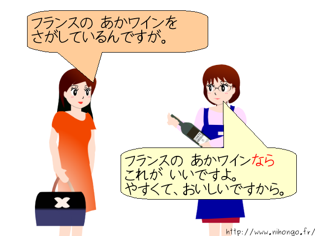 「フランスの 赤ワインなら これが いいですよ。 安くて おいしいですから。」