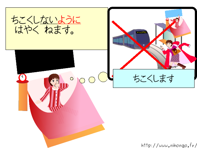 遅刻しないように 早く寝ます。