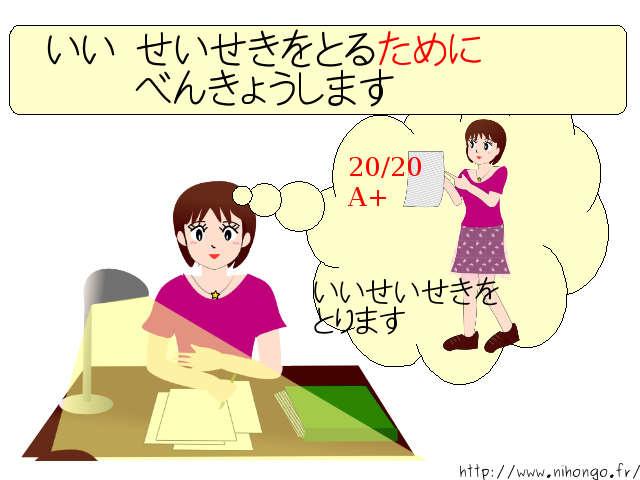 いい 成績を とるために 勉強します。