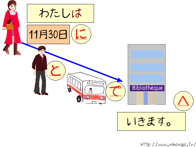 わたしは 11月30日に 彼と バスで 図書館へ 行きます。