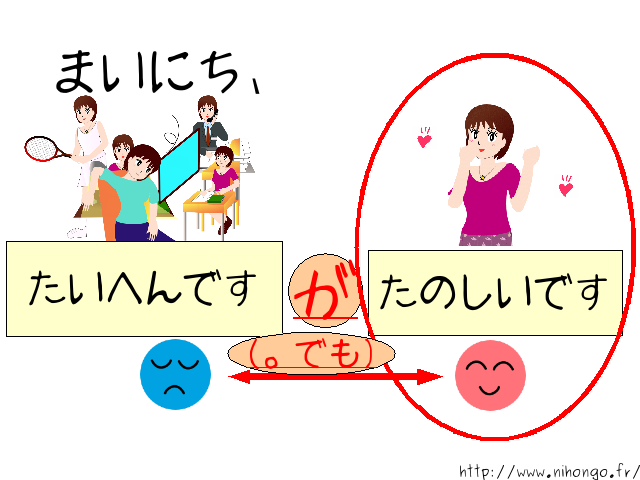 A: (にほんごは) 面白いです/難しいです/簡単です。