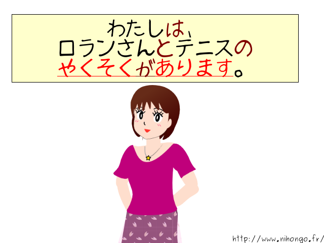 京子さんは ロランさんと テニスの 約束があります。